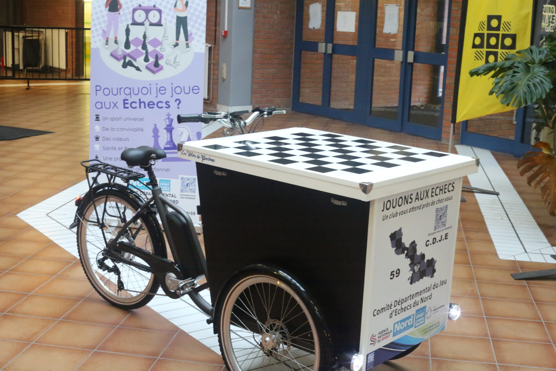 Merveilleux outil de communication, le Chess Trip a été dévoilé lors des Championnats du Nord Jeunes en Novembre 2021. Ce vélo triporteur ( avec assistance électrique ) a été aménagé de telle sorte à pouvoir partir à la rencontre du public et initier à la pratique du jeu d’échecs.